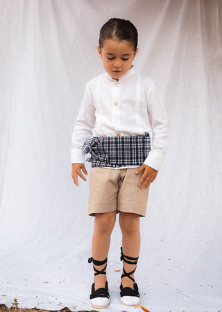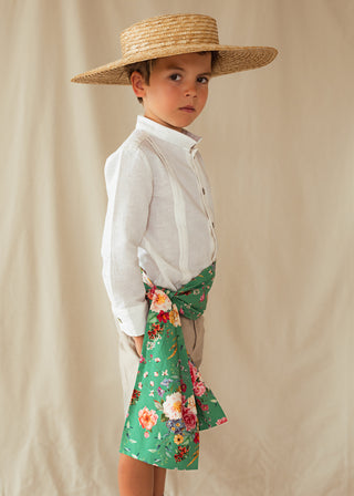 Vestido Barraca CORTO con canesú en lino algodón tierra y falda en lino algodón blanco