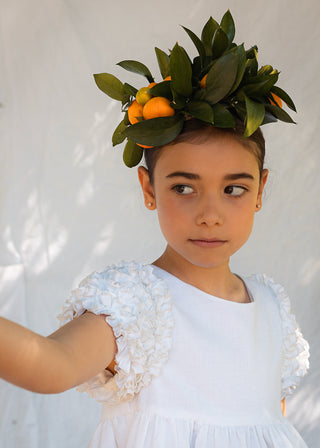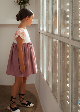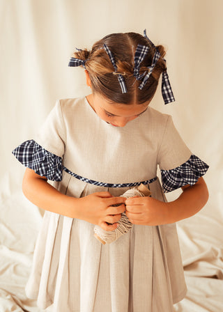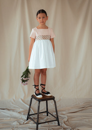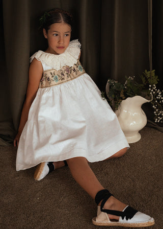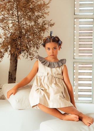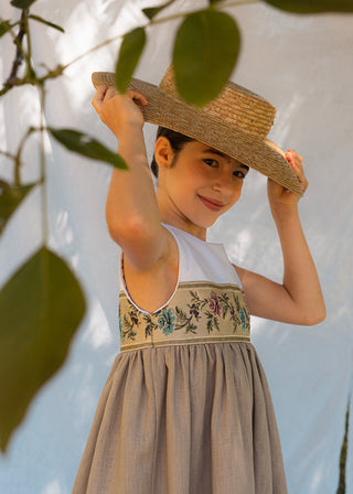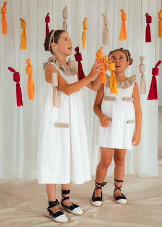 Vestido Barraca CORTO con canesú en lino algodón tierra y falda en lino algodón blanco