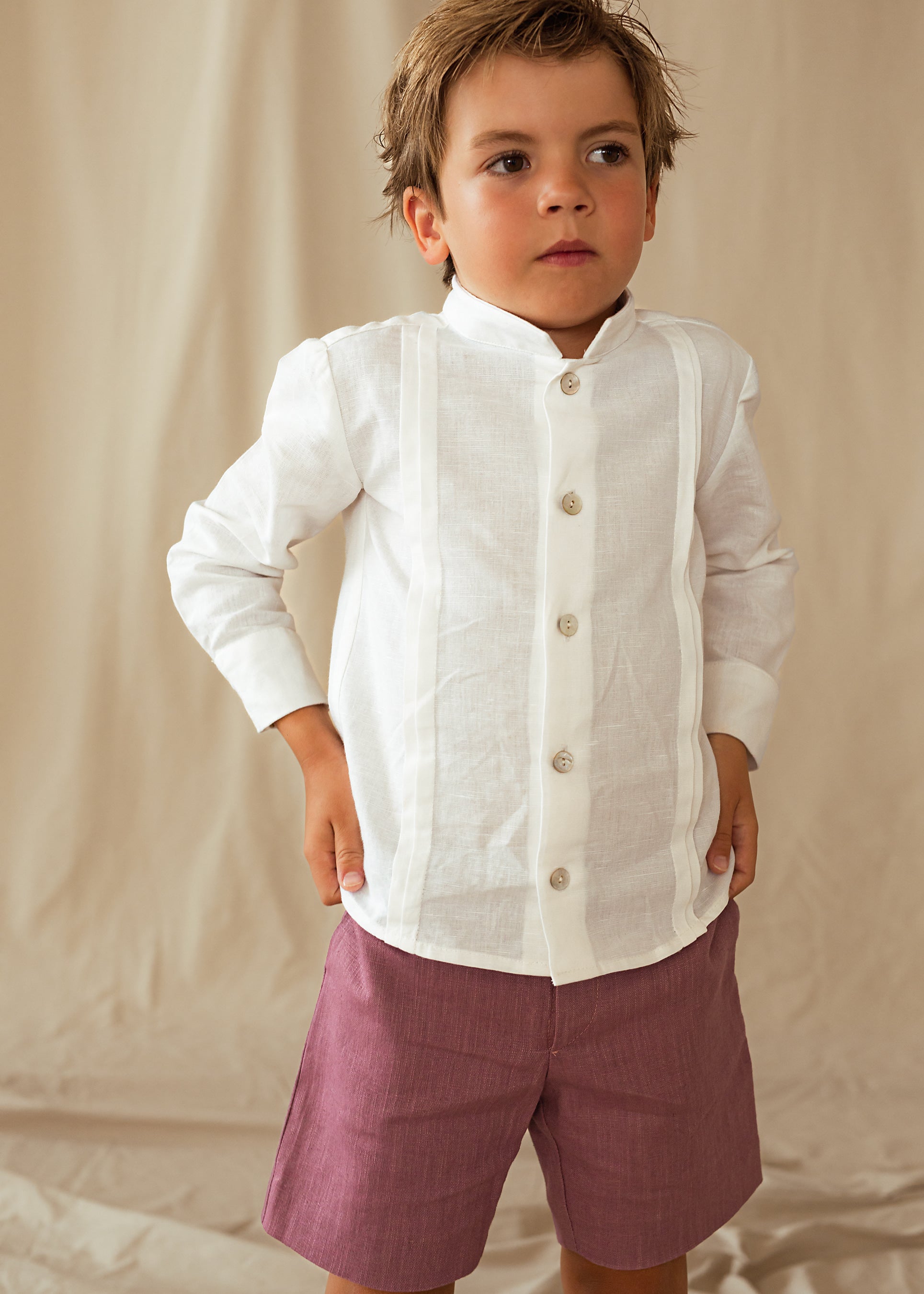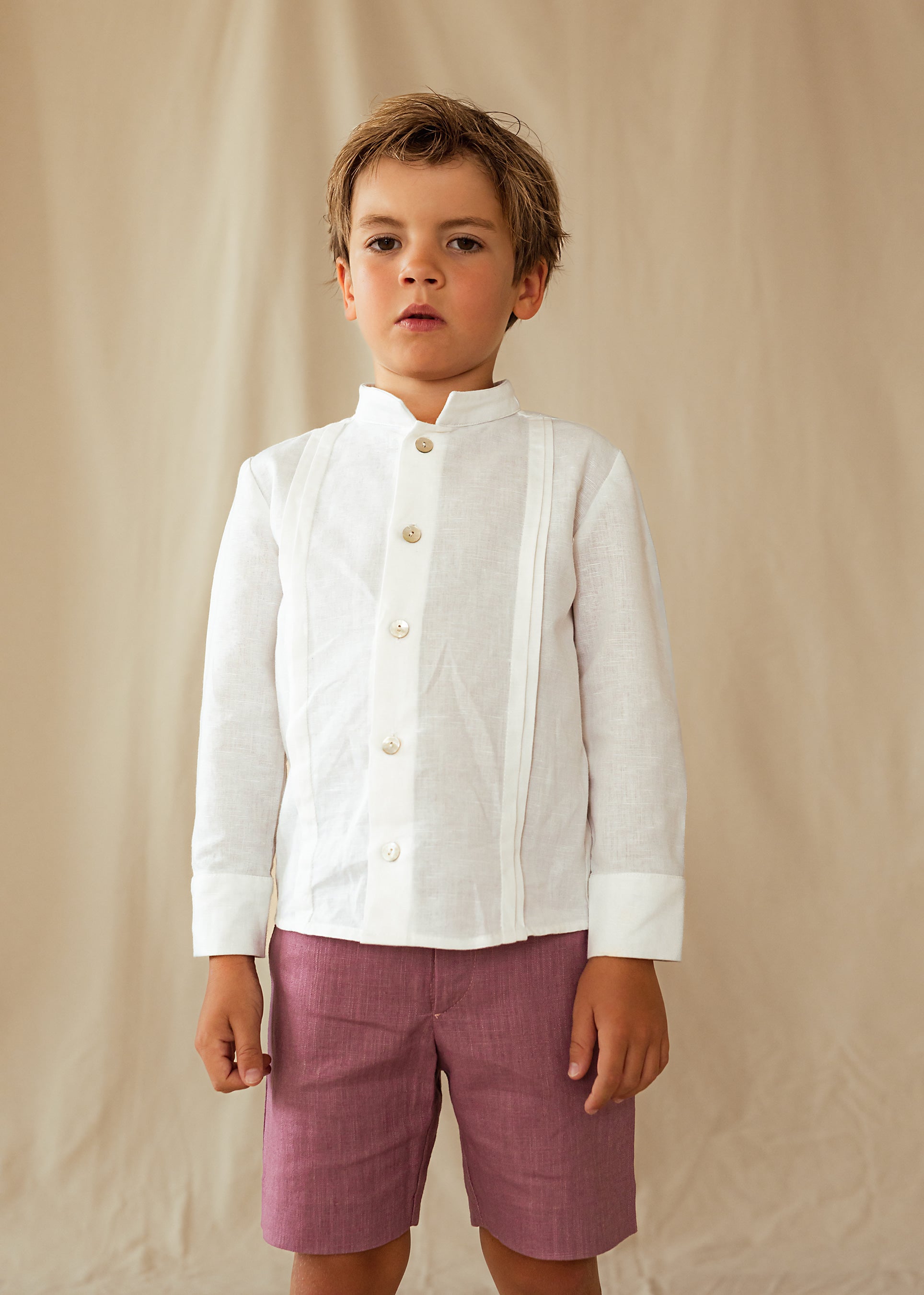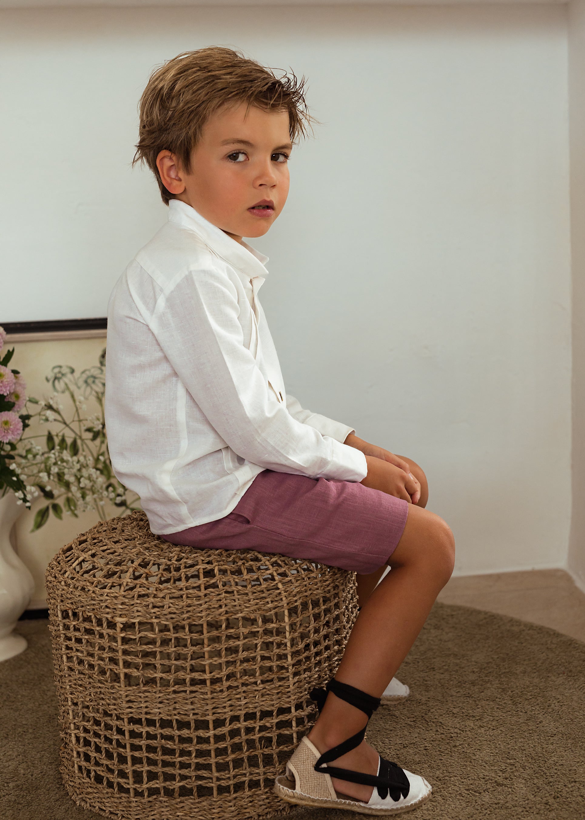 Bermuda confeccionada en lino algodón de color malva. Un tono natural y cálido que combina fácilmente con camisas blancas. De talle medio y corte recto. Lleva botones y goma ajustables en cintura interior. Disponible en cualquier color lino de la colección. Consulta nuestra guía de tallas.